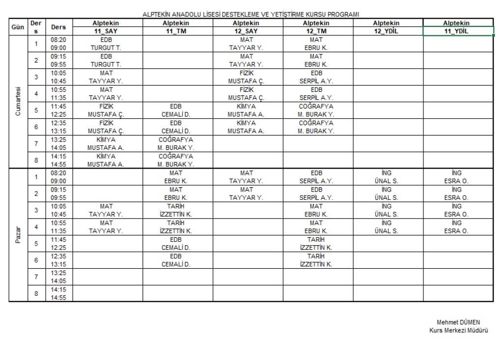 2025-2026 Eğitim Öğretim Yılı Destekleme ve Yetiştirme Kursları 20.09.2025 Cumartesi günü saat 8.20 de aşağıdaki ders programına göre başlayacaktır.